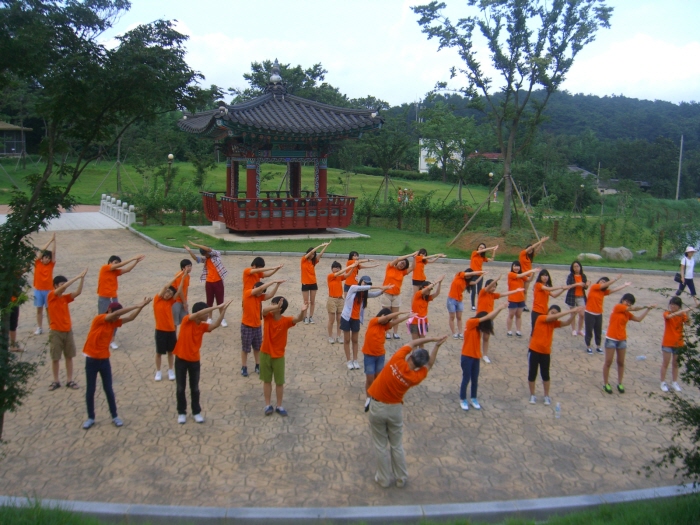 아침에는 기를 바로 펴는 수업으로 하루 를 시작하는 선비의 생활을 체험했습니다.