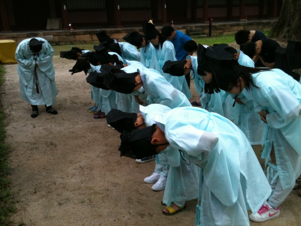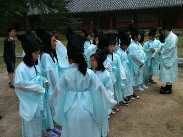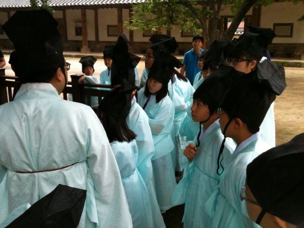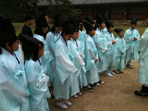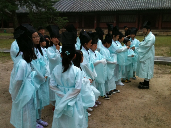성균관의 여기저기를 설명들었어요. 스스로 종아리를 때리며 공부에 열중했다는 편석도 보았고요, 대성전의 18인의 우리나라 학자들에게 인사도 드렸어요.